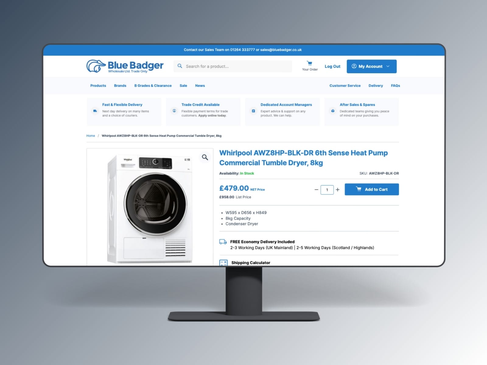 Blue Badger is the go-to wholesaler for dealers in commercial catering, laundry and refrigeration equipment. The UK-based firm sells over 5,000 products, from freezers and bottle coolers to tumble dryers and dishwashers, which are available to trade buyers across Europe via their website.